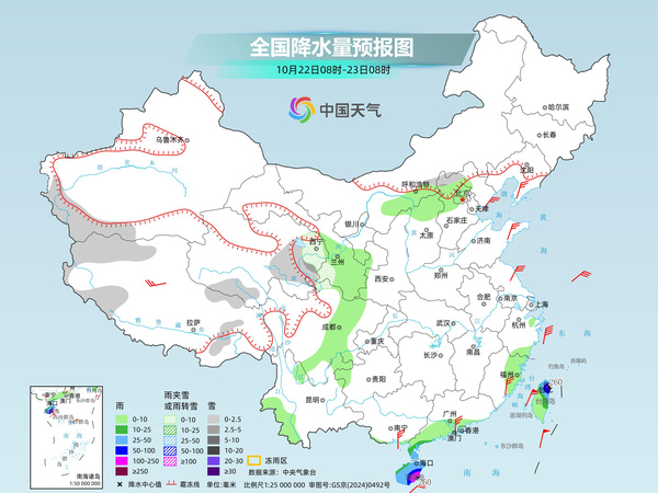 新疆南疆盆地和西部山区、西藏西部和东部、青海东部和南部、甘肃西南部、河北北部等地部分地区有小到中雪或雨夹雪;