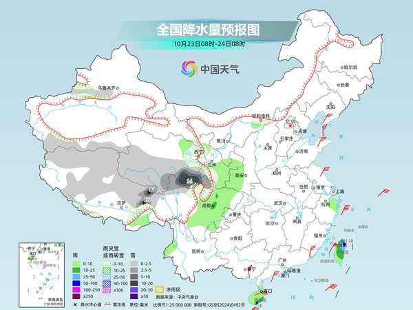 西藏东北部、青海南部、川西高原北部等地部分地区有中到大雪,局地暴雪(10~17毫米);